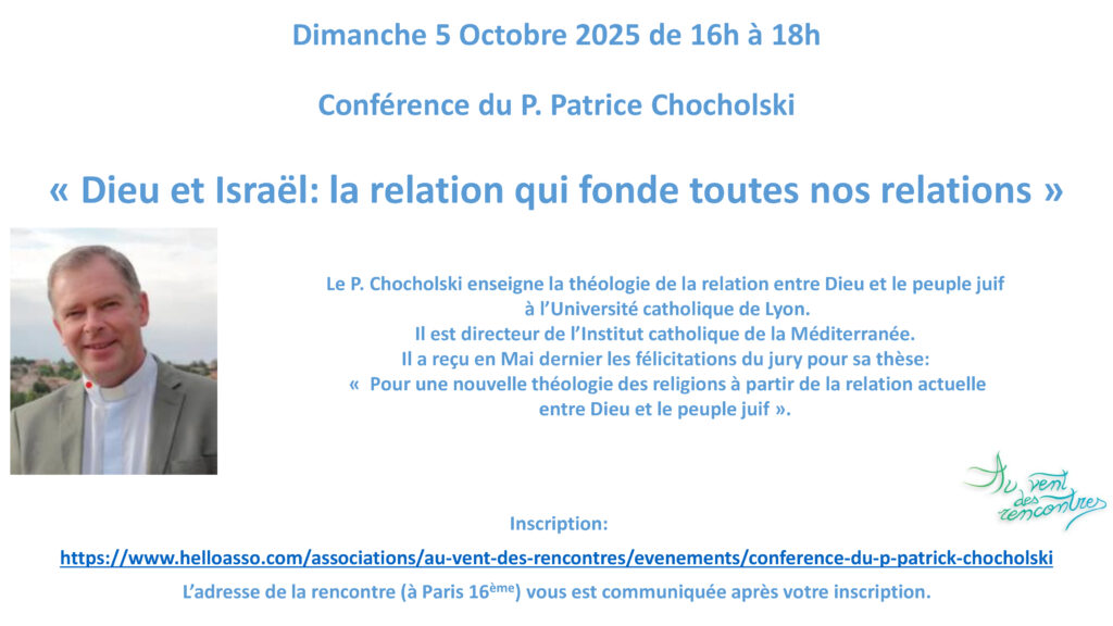 Conférence du P. Patrice Chocholski : « Dieu et Israël: la relation qui fonde toutes nos relations »